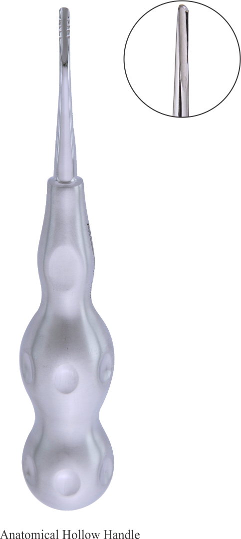 Produktinformationen "Wurzelheber gerade abgerundeter Kopf 2.5 mm gezahnt anatomischer Hohlgriff"